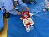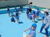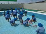 終わった後は、少し水を溜めて、作った船を浮かべてみました。昨日は小さい水槽で浮か...