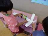 お家から持ってきてもらったいろいろな素材を使って、製作を楽しんでいます。どんなも...