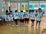 園庭で見つけて育てているアオムシを作りました。お部屋で元気に、あか組さんが作って...
