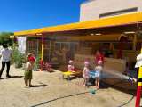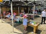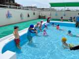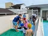 プール遊びはありませんでしたが、水着に着替えて、園庭で水遊びを楽しみました。体で...