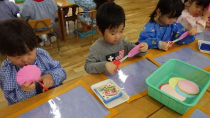 「はさみの使い方は忘れていないかな?」と扱い方もみんなで思い出してから始めました。持ち運び方にも気を付けています!