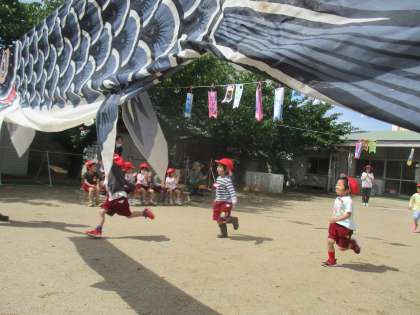 心地よい風の中… 公開日 2024/05/02 更新日 2024/05/02 お知らせ 5月の心地よい風の中、こどもの日の集いをしました。 子どもたちが歌う「こいのぼり」に合わせ、高く高く3匹の鯉のぼりが挙がりました。 風になびく鯉たちを見て「およいでる!」「応援してくれてるね」と嬉しそうな子どもたち。大きなマゴイが待つゴールまで、みんな笑顔で駆けていきました。 みんなで一緒にダンスをしたのも、楽しかったね。 いいね(0)