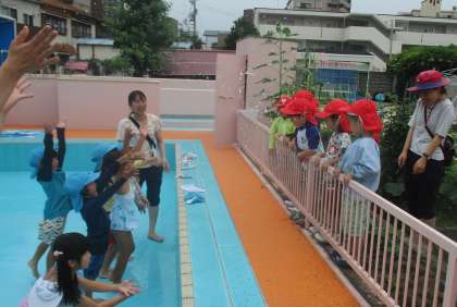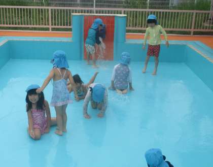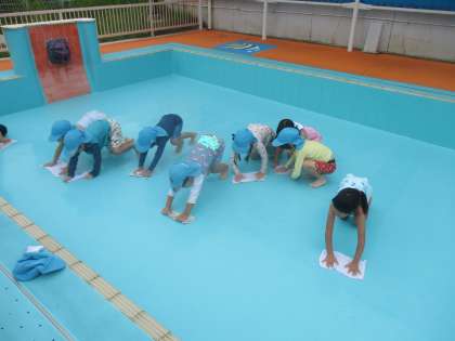 プール開きに向けて、ゆり組がプール掃除をしました。