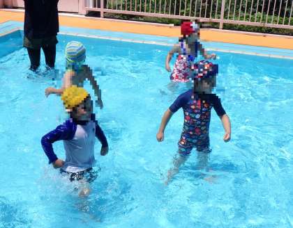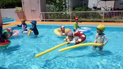 暑い日のプール遊びで、水がとても気持ちよく、子どもたちは存分に水遊びを楽しみました。