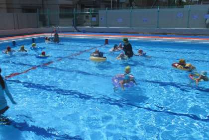 小学校では、幼稚園の子どもたちのために水深を下げたり、プールサイドに水を撒いたりなどいろいろと準備していただき、ありがとうございました。子どもたちは存分に楽しむことができました。