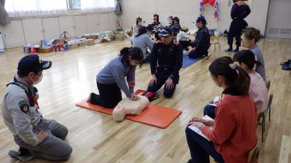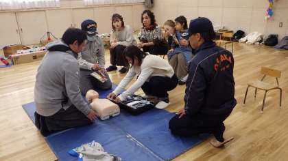 消防署の方に来ていただき、心肺蘇生法を中心に教えていただきました。