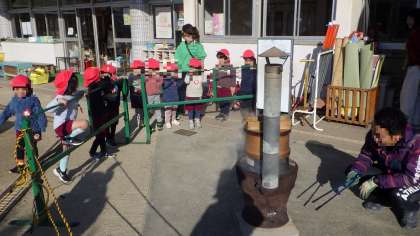 びよ〜んと伸びるおもちを見て目を輝かせる子どもたちでした。