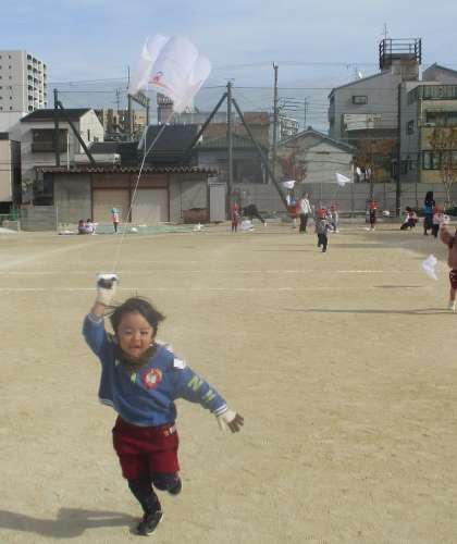 「みて みて!」高く挙がる凧を見て、子どもたちは嬉しそうでした。