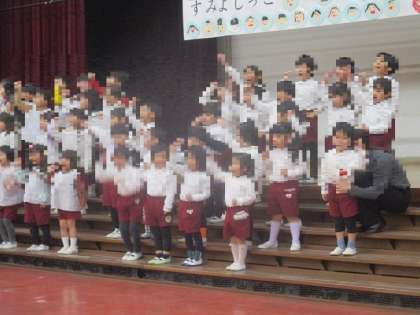 住吉小学校の講堂をお借りして、住吉幼稚園と墨江幼稚園の子どもたちが音楽会をしました。