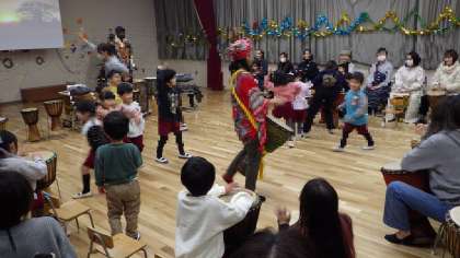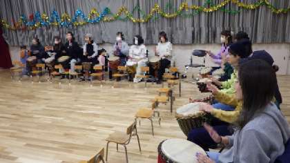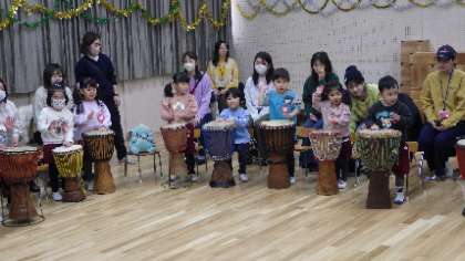 地域子ども子育て事業で、アフリカの伝統楽器「ジェンベ」の演奏者の方をお迎えしました。