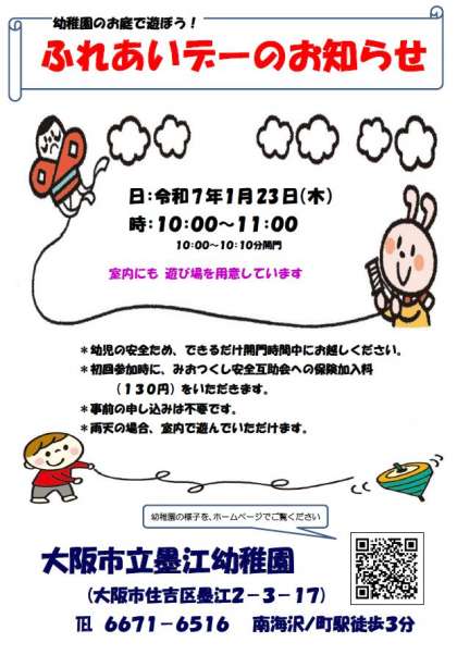 1月ふれあいデー 公開日 2025/01/20 更新日 2025/01/20 お知らせ 1月23日(木)10:00〜11:00はふれあいデーです。 受付時間内に、通用門よりお入りください。 事前予約は必要ありません。 いいね(0)
