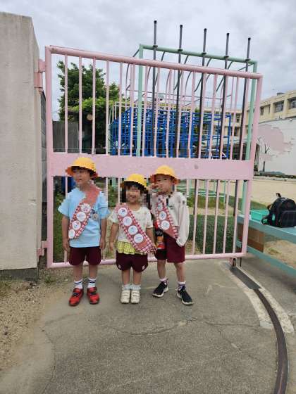5月からゆり組のお当番さんが朝、門に立って、登園してくるお友達やお家の方にあいさつをしています。