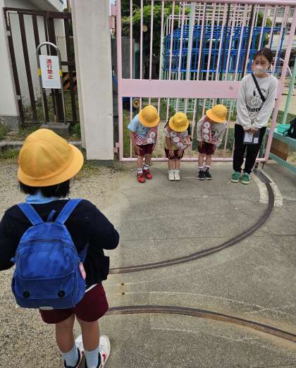 最初は少し緊張している様子もありましたが、何度かあいさつを交わすにつれて自信に繋がり、年長さんらしいかっこいい姿がみられました。