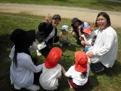 園外保育(長居公園)みんなの遊び♪ 公開日 2025/05/23 更新日 2025/05/23 お知らせ 今日はふれあい園外保育♪ お家の人と一緒なので、子どもたちもとてもうれしそうでした。 まずはみんなで人数集めのゲーム。 「猛獣狩りゲーム」の遠足バージョンで、親子、友達、保護者同士、先生もみんな混ざって、いろいろな人とのふれあいを楽しみました。 みんなの心がほぐれて、笑顔が増えてきました! いいね(0)