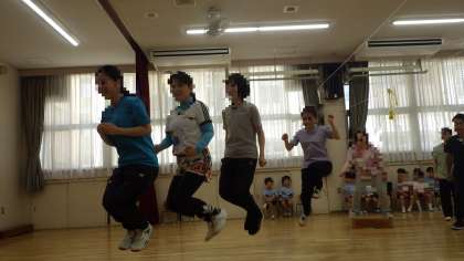 大繩を使っていろいろな遊び方を見てもらい、大盛り上がり!