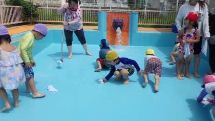 プール遊びが始まる前に、ゆり組さんがプール掃除をしてくれました。