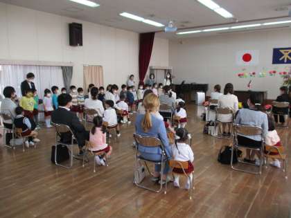 16名のばら組のお友達が入園しました。赤いバッチをつけて、ニコニコ笑顔の子ども達でした。明日から幼稚園でいっぱい遊びましょうね。ゆり組さんも、うさぎのあんこときなこも、先生たちもみんな待っていますよー!