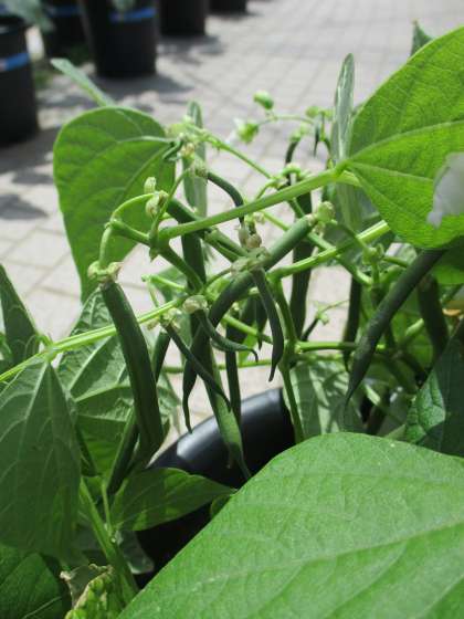 小さな小さなインゲンを見つけ、子どもたちは「見て!赤ちゃんや」と嬉しそうです。