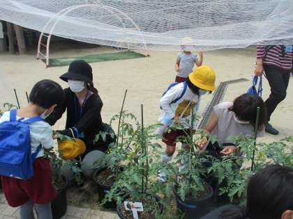 子どもたちは、自分が育てている野菜だけでなく、他の野菜の花の色や実の付き方にも関心をもちはじめました。
