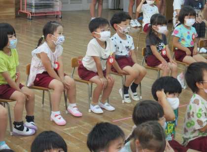明日からのプール遊びを前に、清潔で安全にプール遊びを楽しめるように、子どもたちと話し合いをしました。