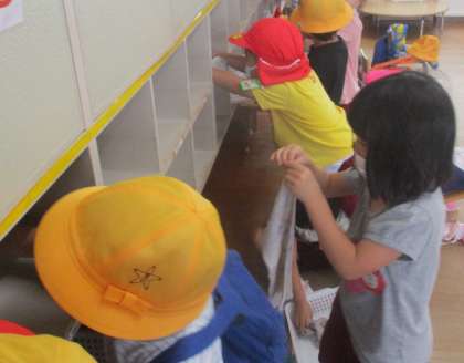 そして、子どもたちは、1学期に使った保育室をきれいに掃除しました。