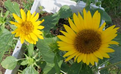夏休みの園庭は、朝から日差しが強く、アサガオやミニヒマワリが美しく咲いています🌻