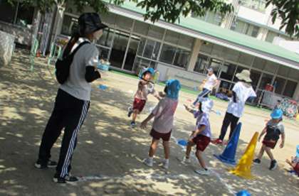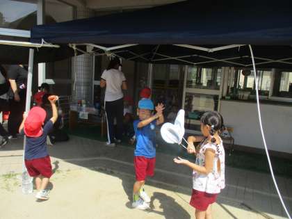 まだまだ暑い! 公開日 2022/09/15 更新日 2022/09/15 お知らせ 厳しい残暑が続いていますが、子どもたちは今日も元気いっぱいです。 朝一番から、暑さ指数を気にしながらの園庭遊び。 バッタを捕まえたり、リレーを楽しんだりしています。 汗をいっぱいかいては、テント下のミストを浴び、それぞれに水分補給をしています。 夢中で遊ぶ子どもたちにも「お茶タイムしよう」と教師が声掛け、熱中症予防に努めています。 いいね(0)