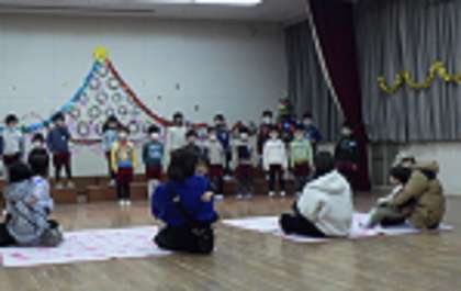 12月のふれあいデーは、ブロックをしたり絵を描いたりしておうちの人と遊んだ後、ばら組・ゆり組の歌を聴いていただきました。