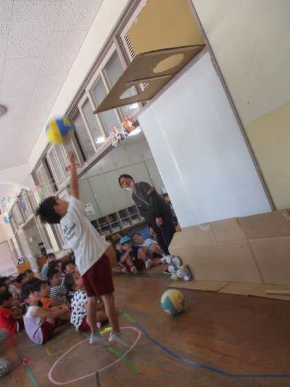 シュート! 公開日 2023/09/15 更新日 2023/09/15 お知らせ 段ボールカッターで穴を開けると、バスケットゴールができました。 「やったー!」「はいったぁ〜!」歓声があがります。 ジャンプシュートも、見事に決まっています。 いいね(0)