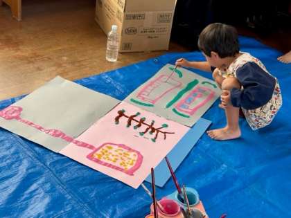 表現豊な子どもたちは、絵もダイナミック!画用紙いっぱいに動物をかいたり、一枚ではかききれず、画用紙を足して動物をかく子もいました。