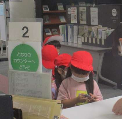 たくさんある本の中から、好きな本を選び、自分でカウンターに持っていき借りました。