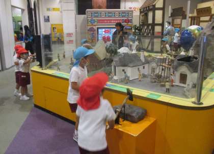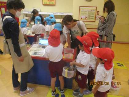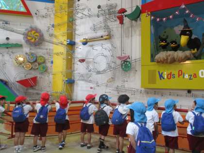 こどもの街では「こっち来て!秘密の場所あるねん!」「な!きれいやろ〜!」「ここあたしのおうち!」といろいろなところに連れて行ってくれました。キッズマートでは「いらっしゃいませ!」とお店屋さんになっていたり、ホットケーキに必要な材料を上手に選んだりしていました。いっぱい遊んで楽しかったね!