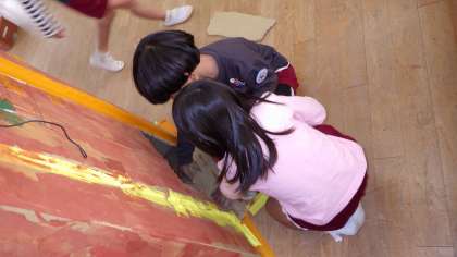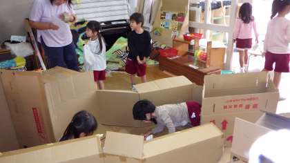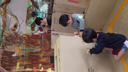 「通れるようにしよう!」大きな木の根元に通りぬけられるトンネルができました!。そこにつながる長い迷路もできてきています!