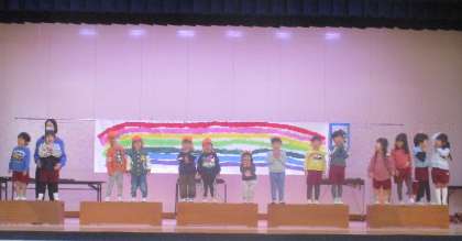 小さい友達も一緒に歌ったよ。 公開日 2023/11/22 更新日 2023/11/22 お知らせ 「うたごえひびけすみえっこ」のリハーサルを小さい友達も聴きにきてくれました。 一緒に舞台にあがって、ばら組と一緒に歌も歌いました。 少し緊張していましたが、楽しんでいました。 いいね(0)