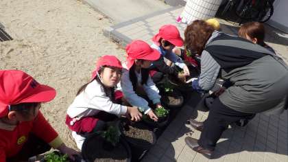 ゆり組は、昨年度も一緒に植え付けをした経験があって上手だったので、すみちゃん隊の方に褒めていただきました。