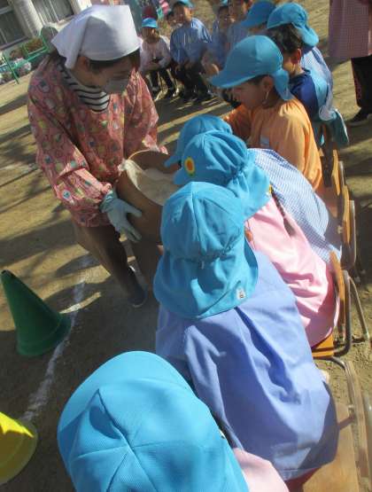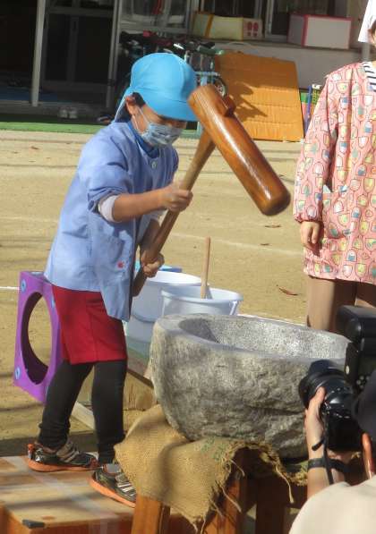 おもちつき 公開日 2023/12/08 更新日 2023/12/08 お知らせ 「いいにおい〜」「おこめのにおいがする」 蒸しあがったもち米の香りをかいだり、米粒がお餅になっていく様子を、不思議そうに見たりしていました。 いいね(0)