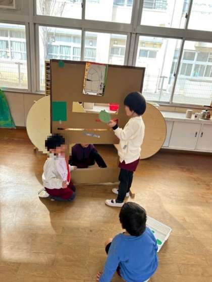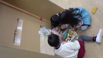 「ぽんたのじどうはんばいき」というお話ごっこで遊んでいるばら組は、自動販売機に葉っぱを入れて「ご飯が欲しいなあ」「人形ください」など、欲しいものを言ったり、自動販売機の中から言われたものを出したりして遊んでいます。園庭では、「ぽんたの葉っぱ、見つけてん!」「すぽぽんのぽん!」と、ぽんたになっていました♪