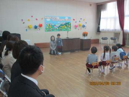始業式では、新しい先生の名前を教えてもらい、子どもたちも自己紹介を行いました。
