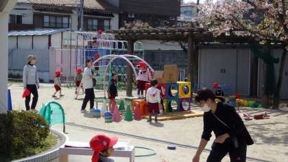 今日もとってもいいお天気なので、園庭でのびのびと好きな遊びを楽しむ子どもたち。