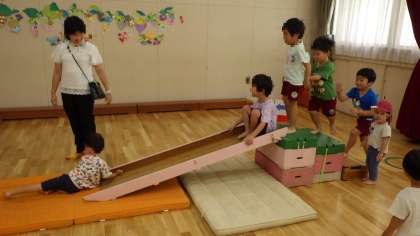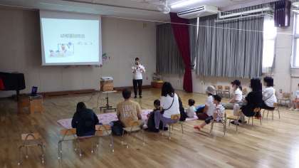幼稚園の子どもたちが普段しているリズム遊びも一緒にして、楽しい時間を過ごすことができました。