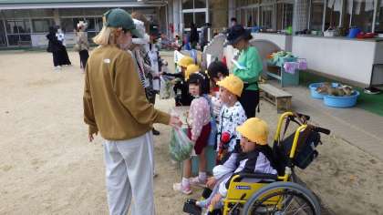 間引き菜がとってもおいしそうだったので、ゆり組がお店屋さんになって、保護者の方に販売しました。(無料です!)