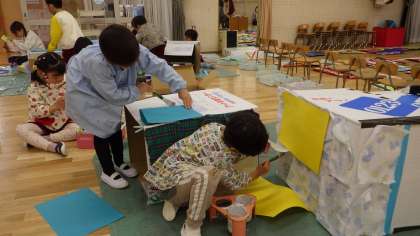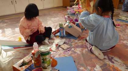 子どもたちはかいたりつくったりして遊ぶことを楽しんでいます。