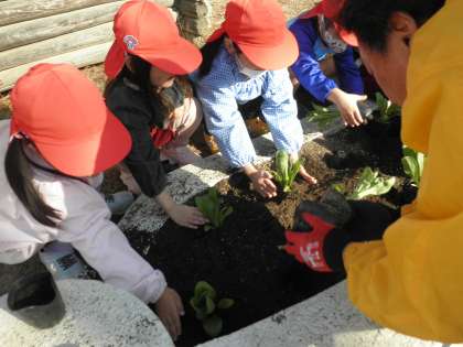 6月にも植え方を教えていただいていたので、子どもたちもとても上手に植えることができました。