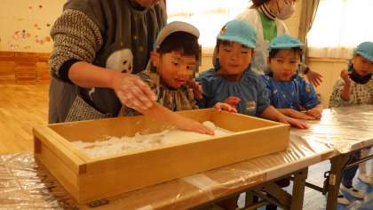 園長先生が鏡餅用のおもちを丸めてくださいました。
