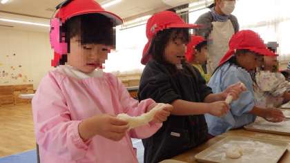 そして、おもちを丸めたり、ちぎったり、伸ばしたりして、存分におもちの感触を楽しみました♪