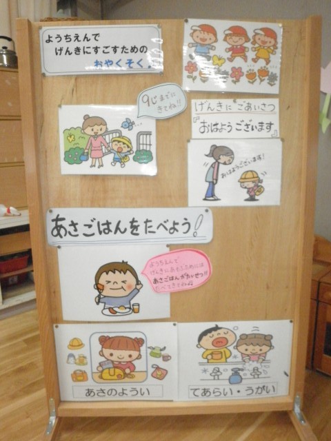 ①早寝早起きをして、朝の9時までに幼稚園にくる!