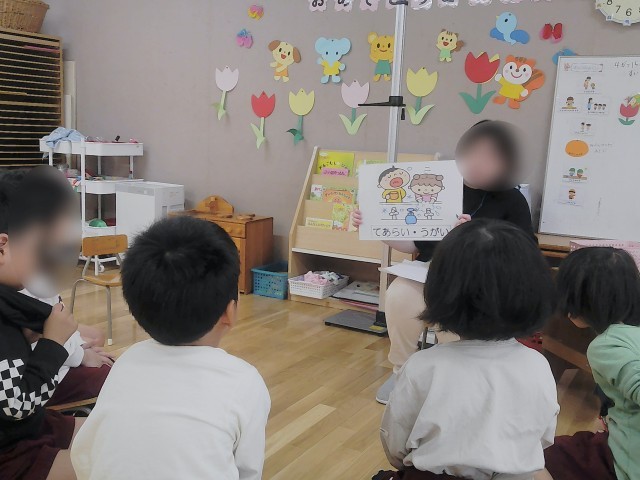 4月の保健指導は【ようちえんでげんきにすごすためのおやくそく】のお話をしました!