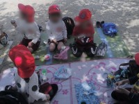 今日はおにぎり弁当の日!🍙園庭でゆり組、ばら組みんなでおにぎりを食べました。暑い...