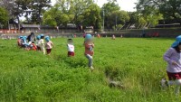 もうすぐジャガイモの赤ちゃんを植えます。その前に、4歳児ばら組がせっせと畑仕事を...