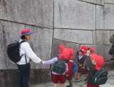 大阪城公園へ出掛けました。 子どもたちは、大きな石垣の隙間に薄い石が詰められてい...